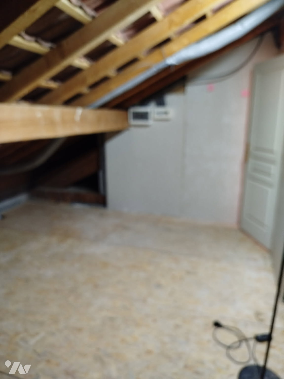 Etage : palier/bureau, 3 chambres (dont une à terminer) , une salle de bains en préparation , grenier